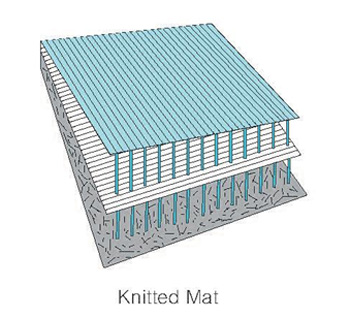 E-glass Knitted Mat: Made of chopped fiber in specified length, randomly & evenly distributed on conveyor, stitched together by polyester yarn and cut into certain widths and lengths. It is compatible with UP and VE resins.