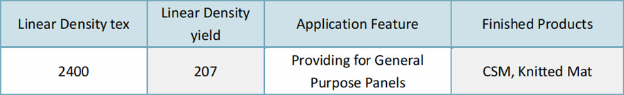 E-glass roving for mat is coated with silane-based sizing, compatible with UP, VE resins and is widely used to produce CSM, transparent, translucent panels and corrugated sheets.