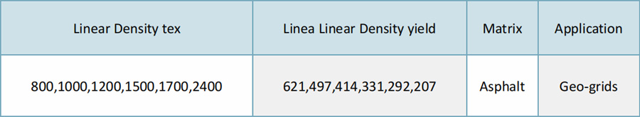 Direct roving for geo-grids has excellent process-ability, easy for asphalt coating and is widely used to produce geo-grids of high strength and modulus.