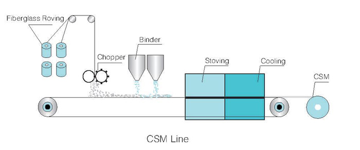 E-glass Chopped Strand Mat: made of chopped fiber in specified length, randomly & evenly distributed on conveyor, bonded together by polyester powder or emulsion binder and cut into certain widths & lengths alter heating forming. B is compatible with UP and VE resins.