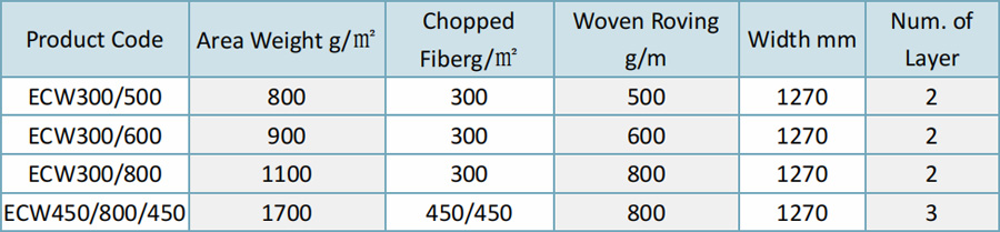 Combo mat is made by stitching with polyester yarn one layer of chopped fiber onto woven roving, or one layer of chopped fiber on both sides of woven roving. It is compatible with UP, VE resins, etc.