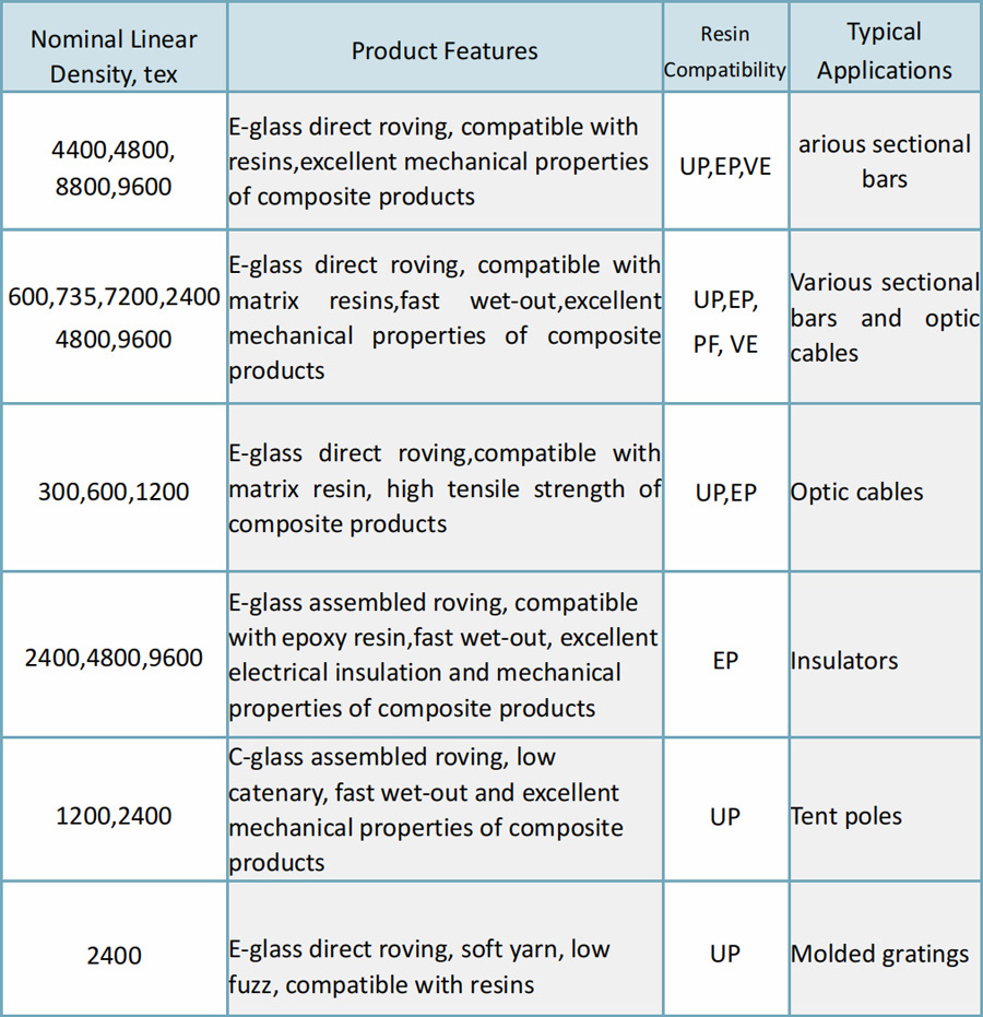 Rovings for Pultrusion are compatible with UP, EP. VE and PF resins and widely used in building & construction, telecommunication and insulation industries.