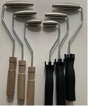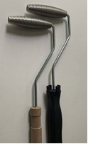 Designed for concave surfaces and filets where flat rollers are not effective. All these rollers are machined into deep fins for efficient air relief and excellent lamination. All radius and corner rollers come with strong frames and ferrule reinforced handles hat accept extension handles.